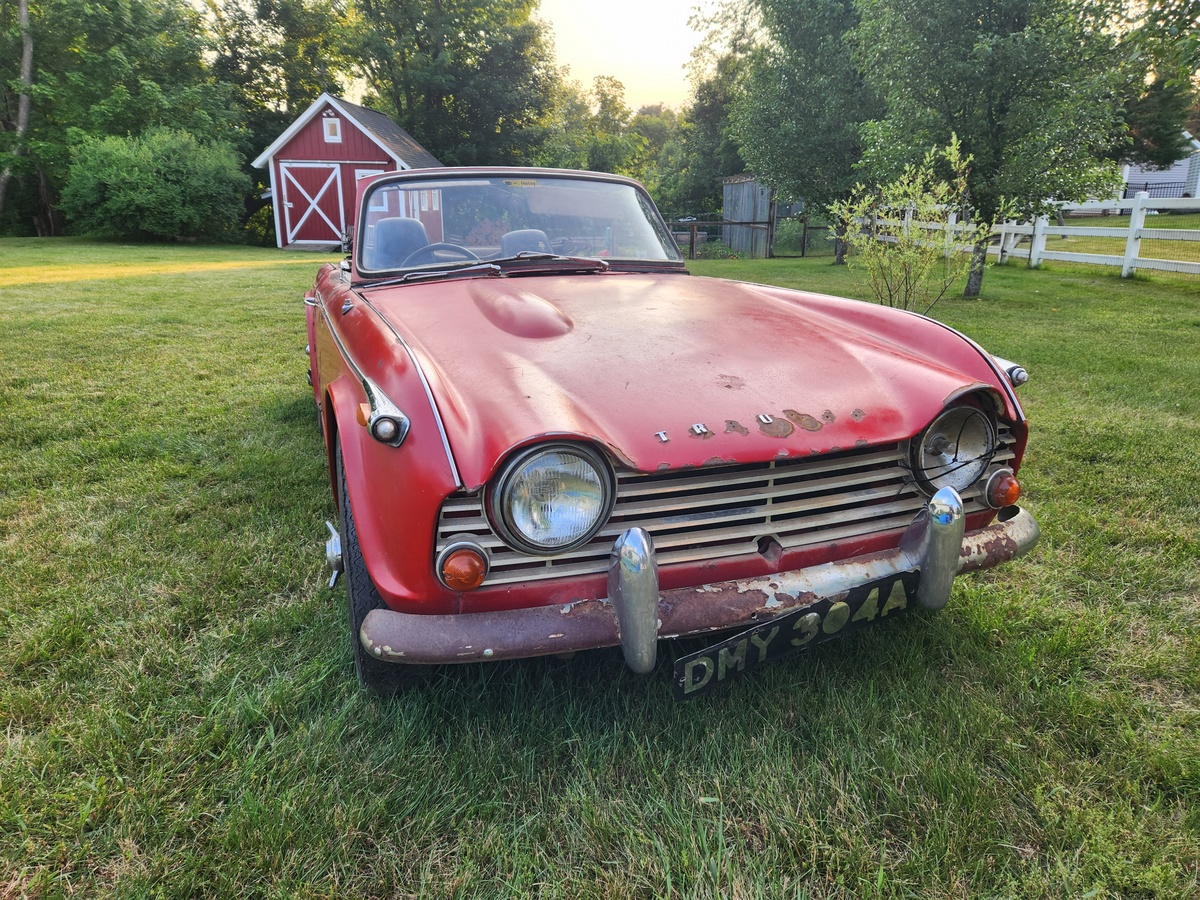 So with my new-found appreciation for this era of Triumphs, I soon found and ultimately purchased this terrifically crusty 1963 Triumph TR4 not too far from me in the summer of 2023:
