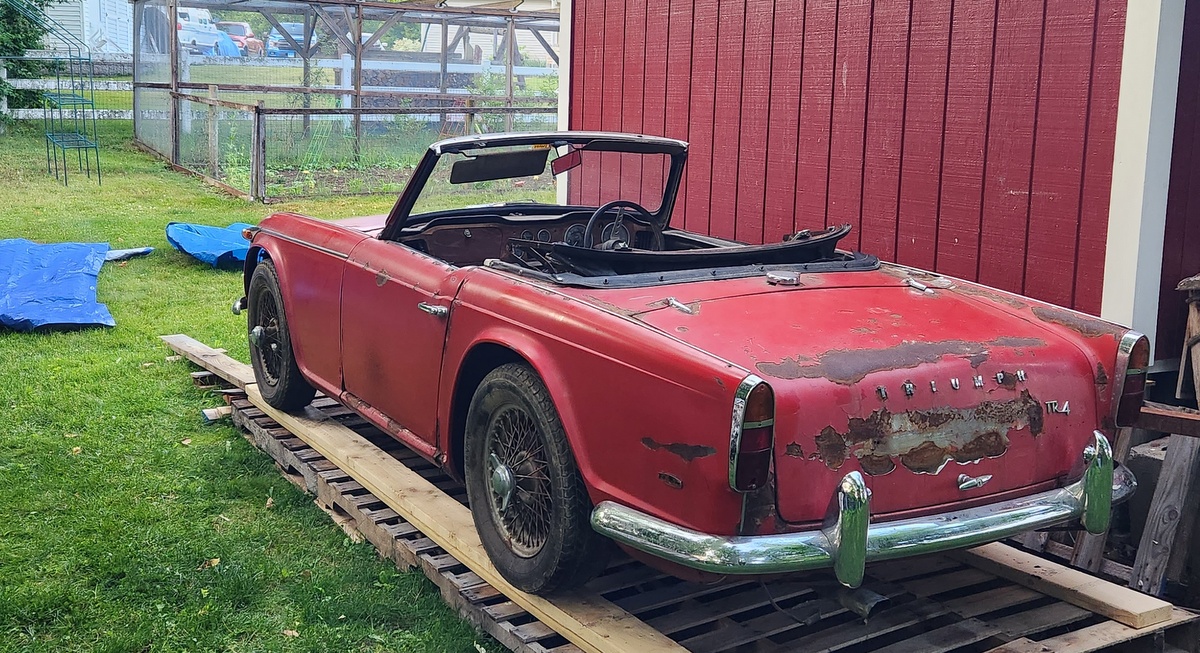 So with my new-found appreciation for this era of Triumphs, I soon found and ultimately purchased this terrifically crusty 1963 Triumph TR4 not too far from me in the summer of 2023: